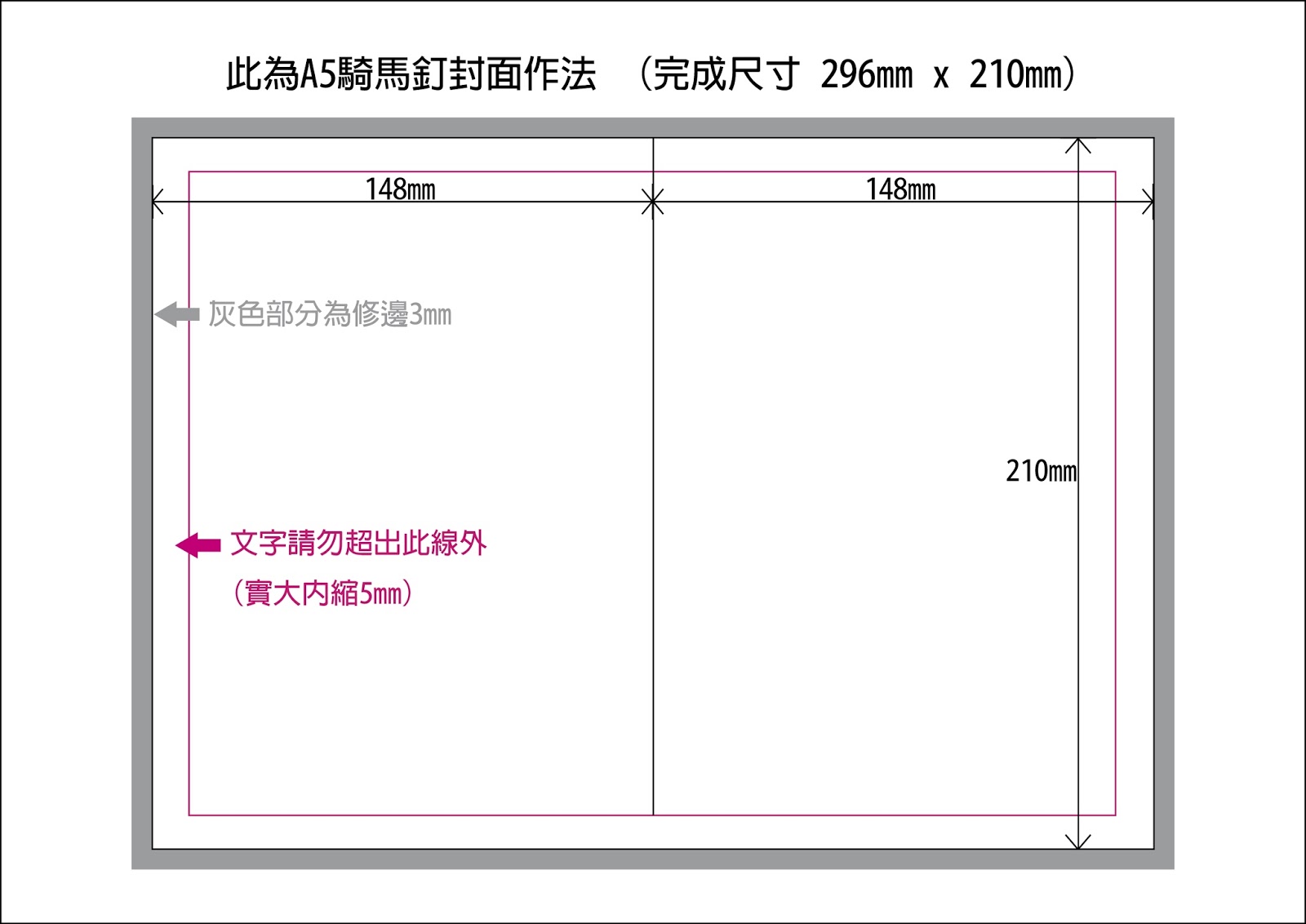 騎馬釘封面A5:版面請開:30.2×21.6cm